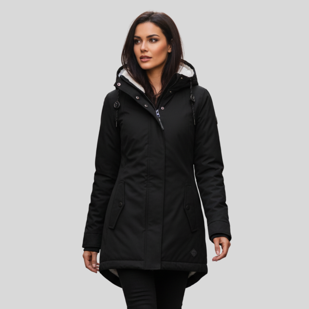 La giacca Alda combina il meglio dei due mondi. È impermeabile, foderata con un interno morbido e dotata di un pratico cappuccio che protegge dal vento e dalla pioggia. Il taglio lungo vi mantiene comode e confortevoli, pur mantenendo un aspetto elegante.